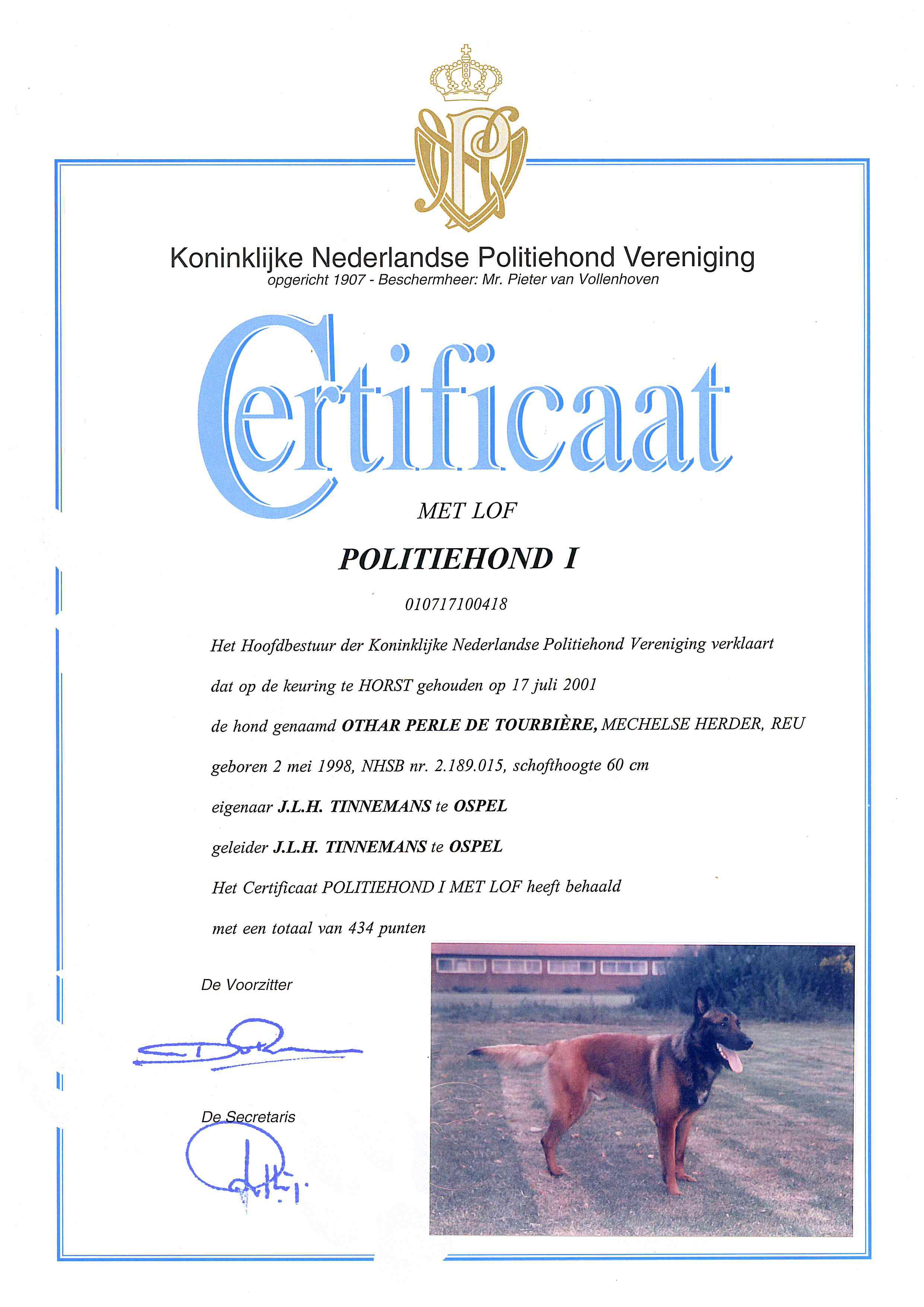 Onderstaand diverse certificaten. U kunt op de afbeelding klikken om een grotere versie te kunnen zien.