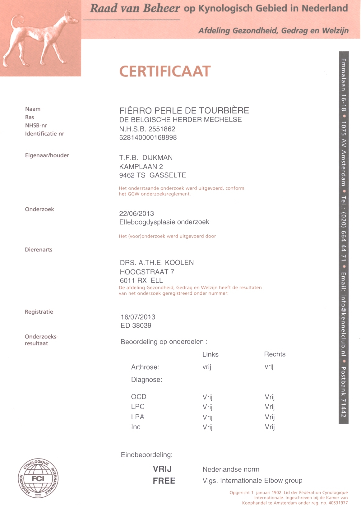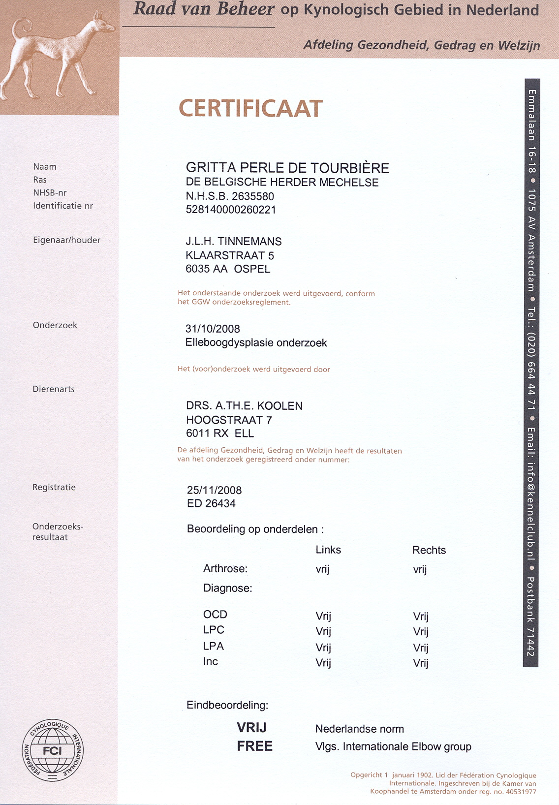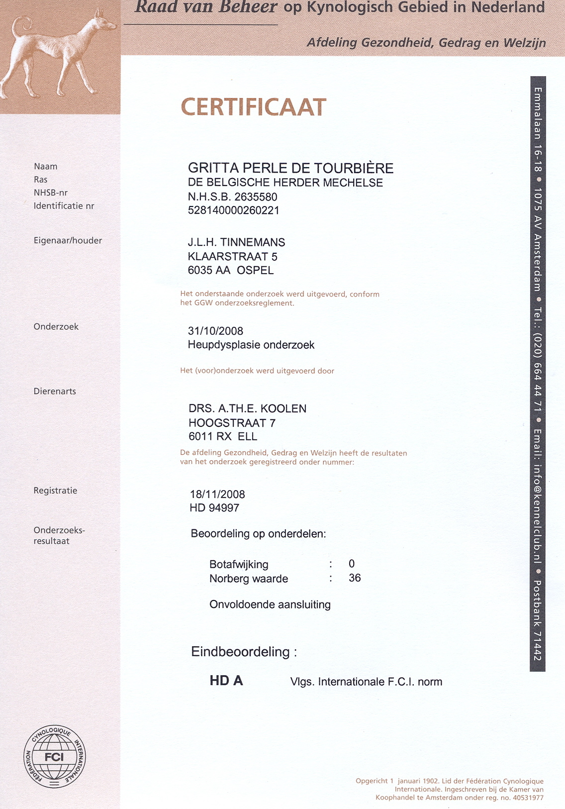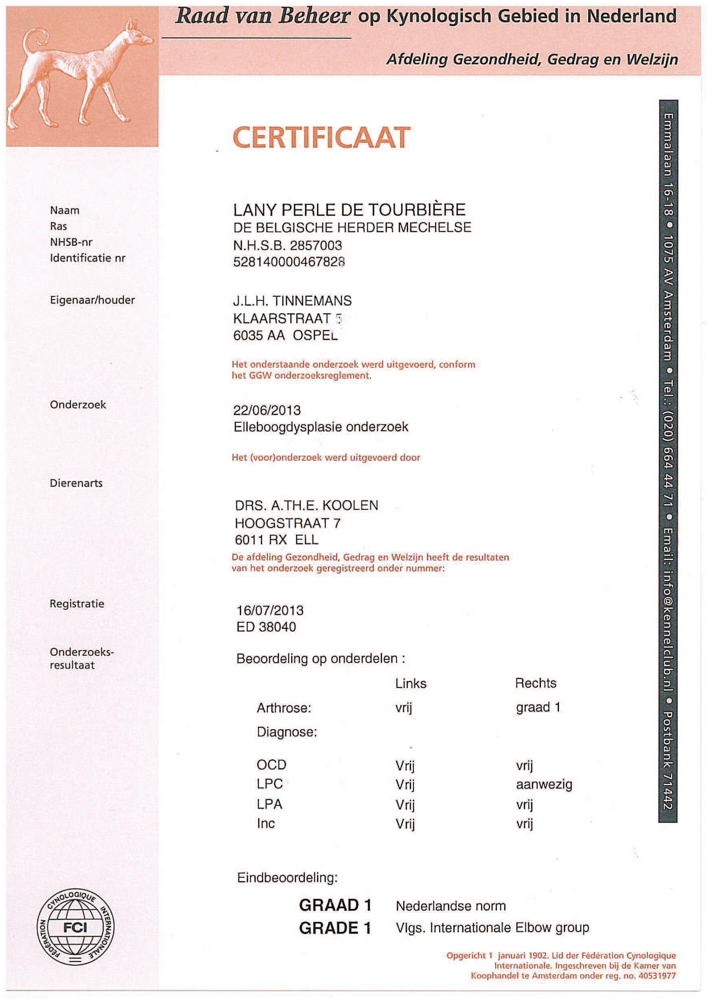 ED Certificaat Gritta HD Certificaat Gritta