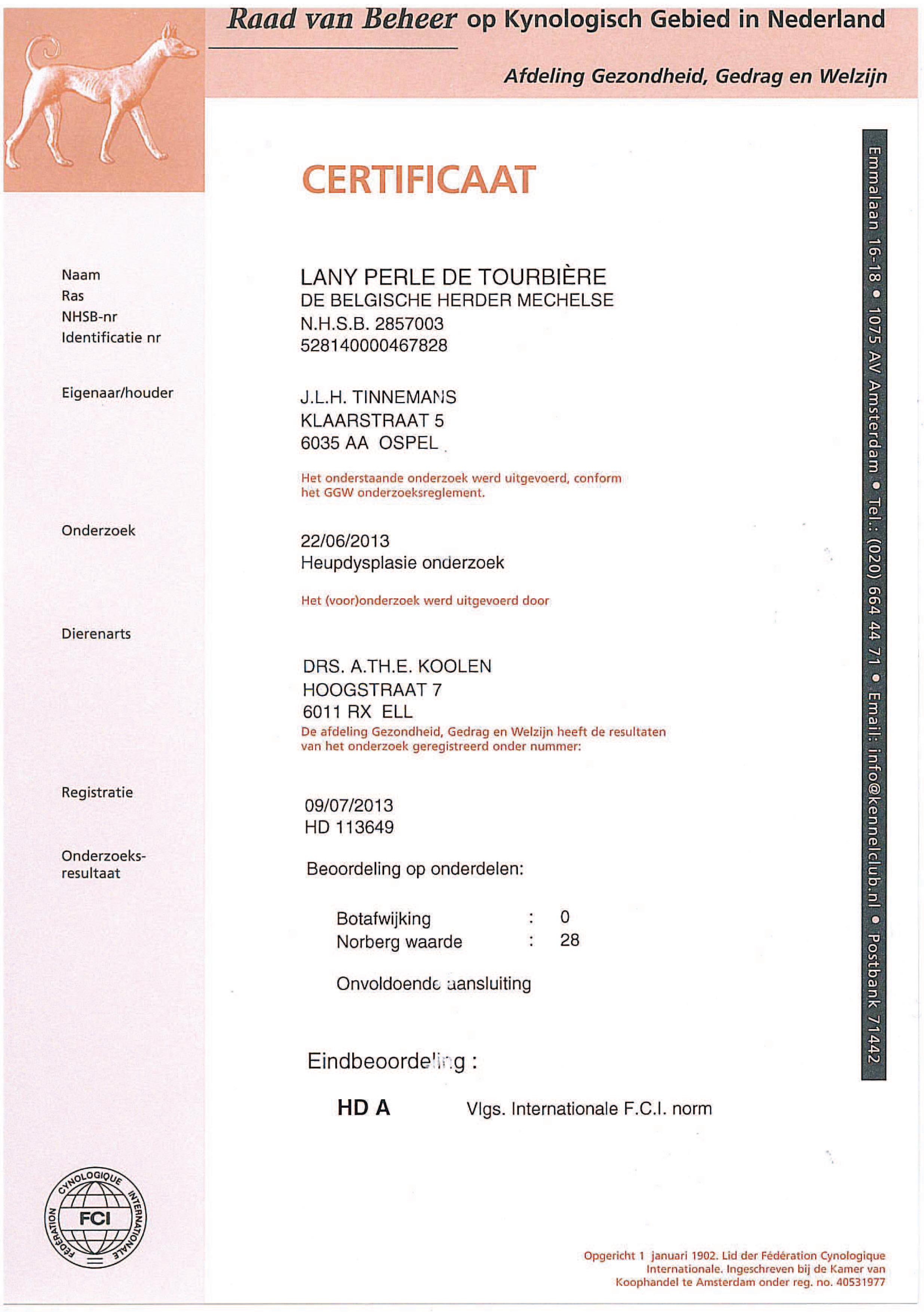 ED Certificaat Lany HD Certificaat Lany