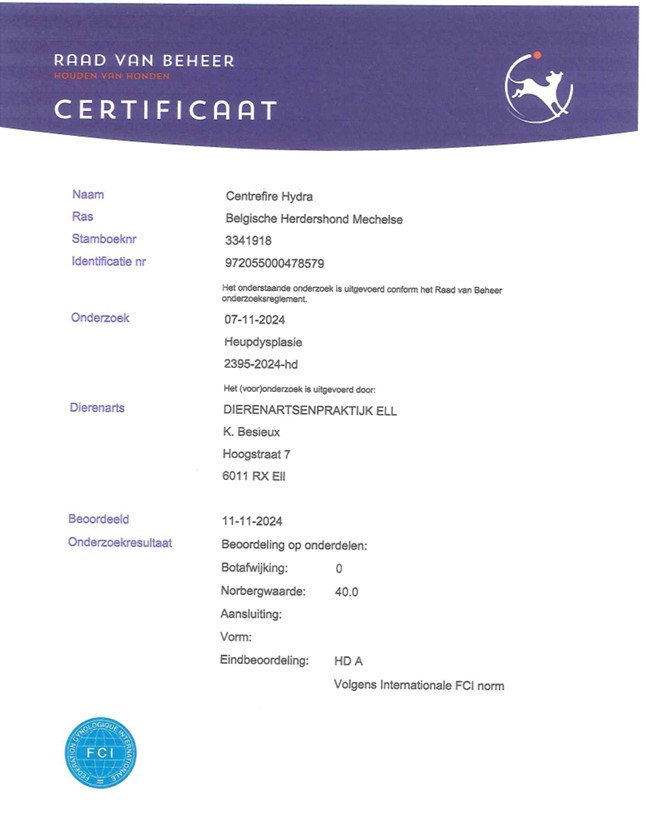 HD certificaat Centrefire Hydra: